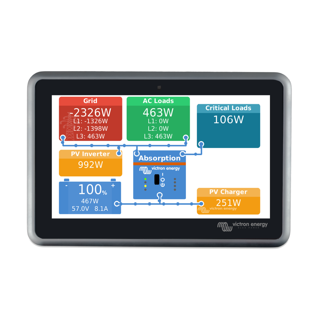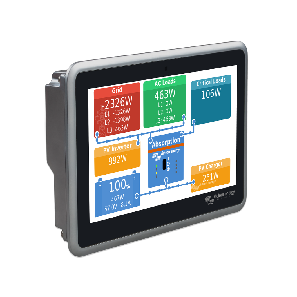 The Ekrano GX represents the next generation in the GX product family. With its complete range of connections and interfaces as well as its integrated 7-inch touchscreen display, it is the most powerful GX device to date and allows you to always have perfect control over your system from wherever you are and to maximise its performance.